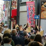 高円寺駅北口、早稲田通りに続く”しあわせの黄色いみち”庚申通り商店街を阿波おどりが演舞します。