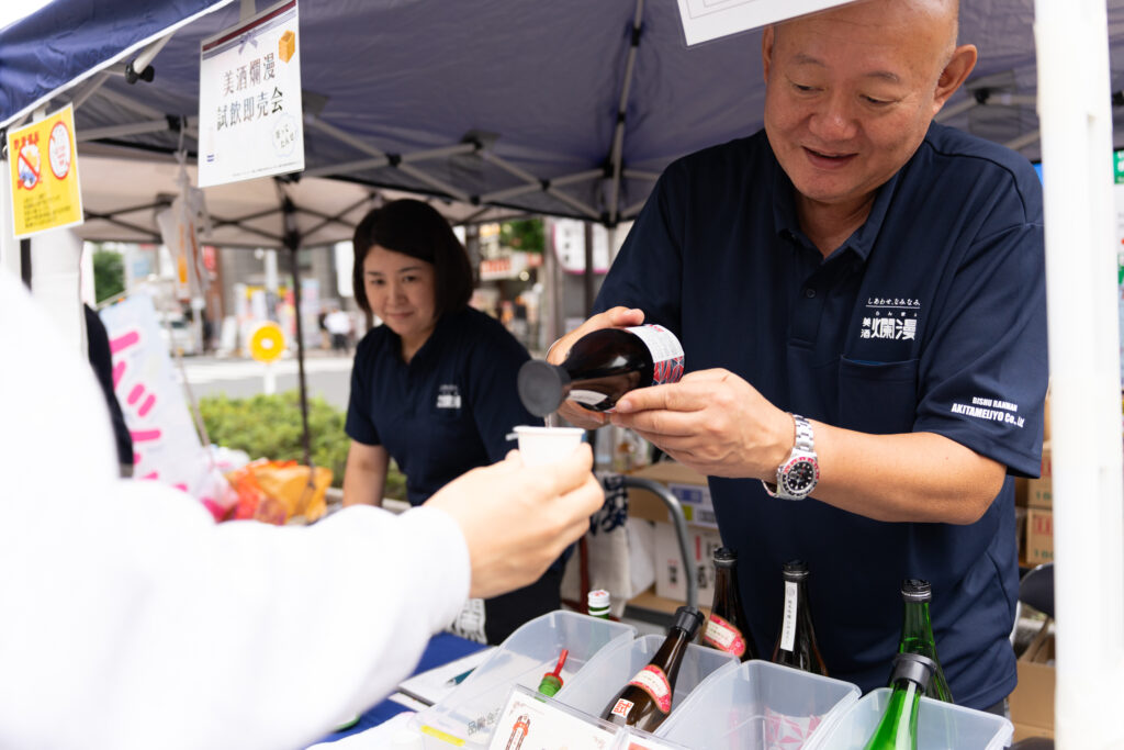 環状7号線沿いの大型看板「美酒爛漫」でおなじみの秋田銘醸です。日本酒の試飲・販売を行います。