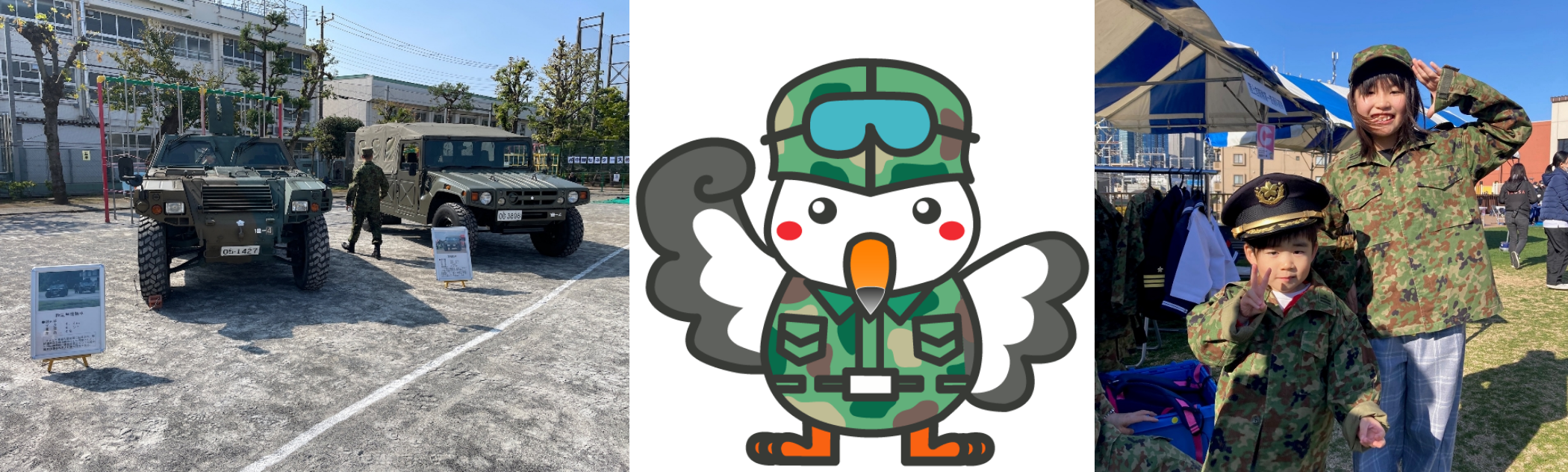 自衛隊車両の展示や、自衛隊の制服が着られる試着体験コーナーも。ぜひ遊びに来てください!